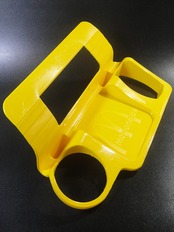 80年代頃の米国マクドナルドの車ドアガラス窓の間にタブを挿して引っ掛けて使うカー トレイです。左右にカップとポテトを入れるホルダーと中央にバーガーを置くトレイになっています。