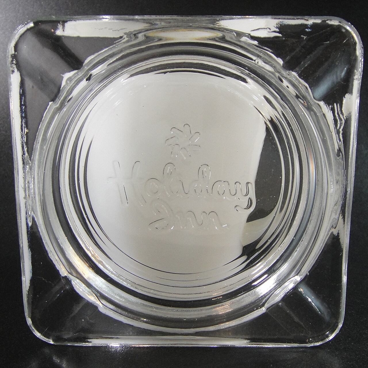 80~90年代頃のアメリカのホリデイ・イン灰皿です。ロゴマークが裏面に浮き彫りになているエンボスタイプのガラス製スクエア型灰皿です。
