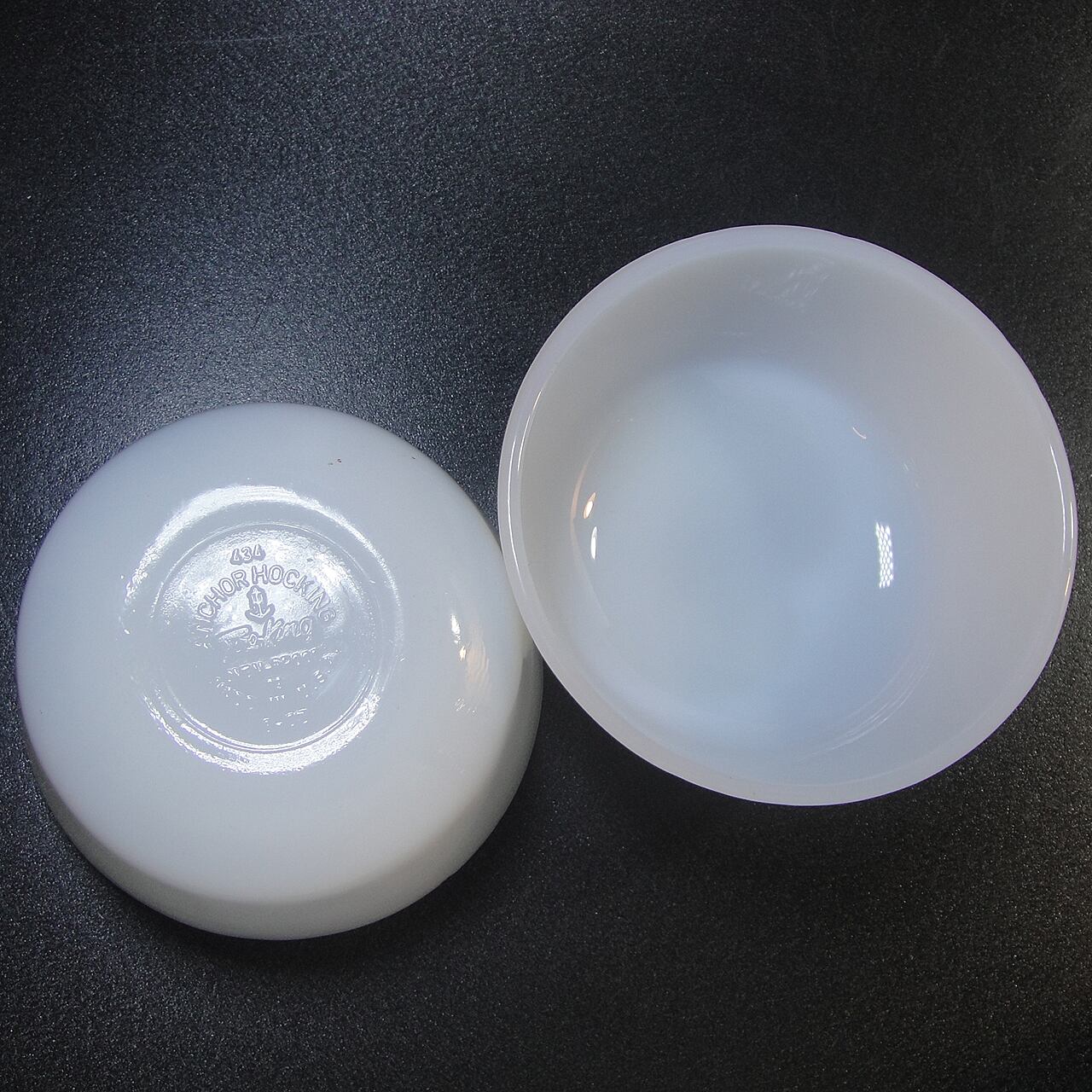 70年代頃のアメリカ製ファイヤーキングのカスタードカップ2個セットです。使い勝手良い小鉢サイズのホワイト色ミルクガラスカップです。