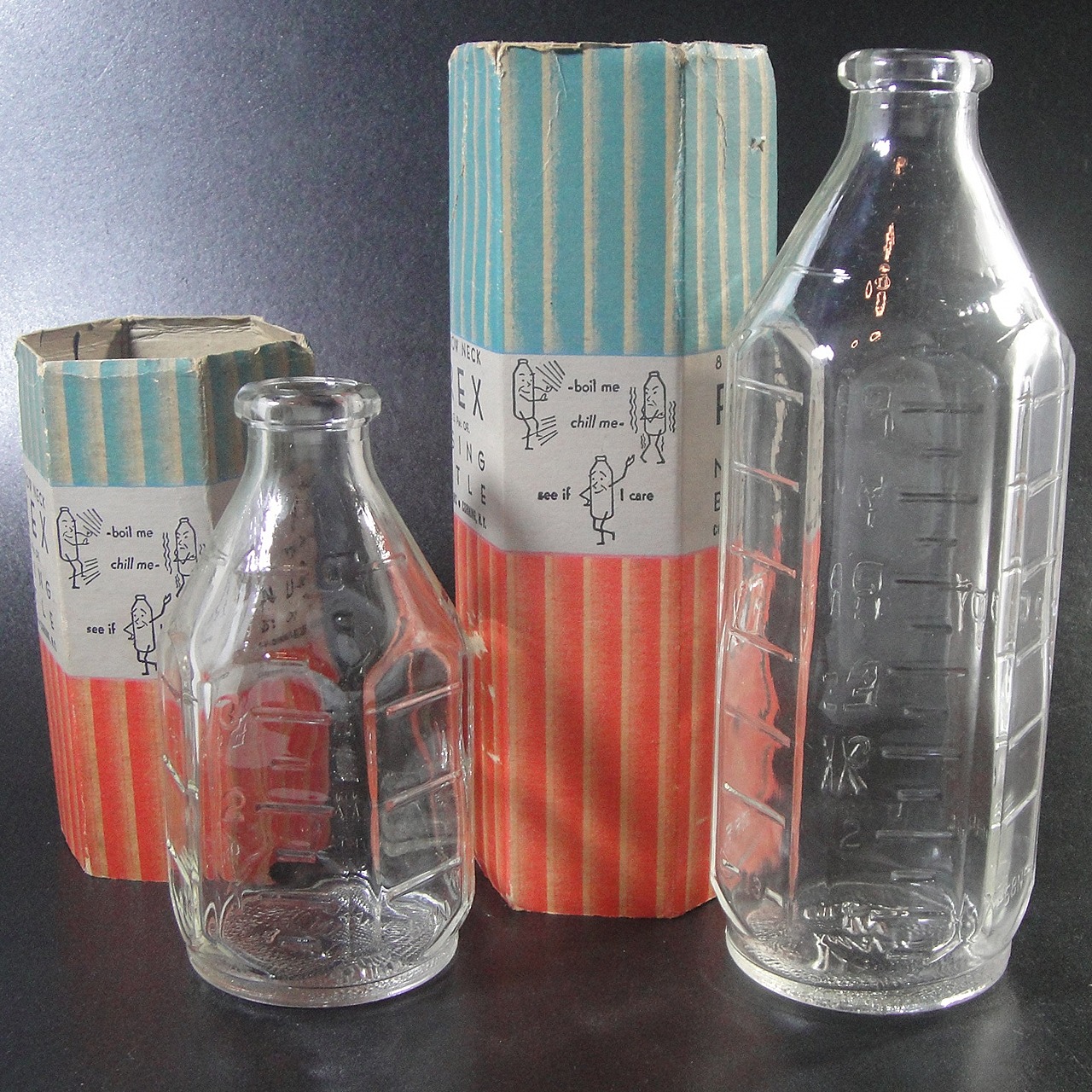 40’sアメリカ製パイレックスPYREXナーシングボトル哺乳瓶2種セット未使用品1940年代☆彡