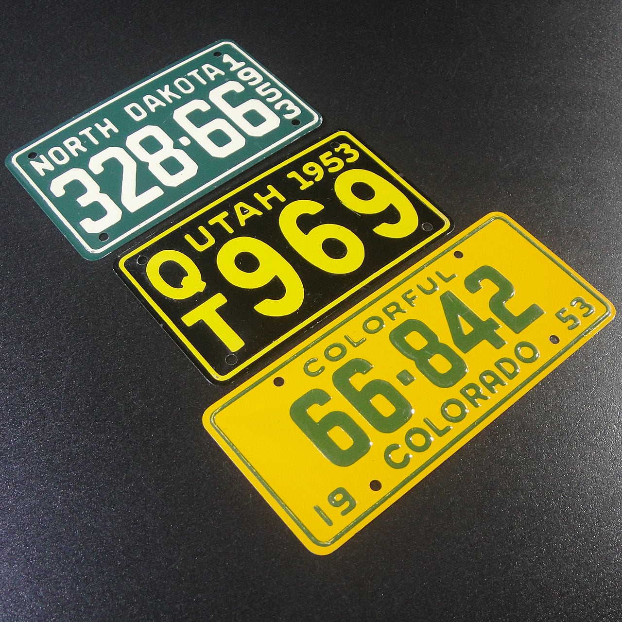 1953年頃のアメリカシリアル会社ジェネラルミルズ社のホイートシリアルの箱に入っていたオマケで自転車用ミニチュアナンバープレートで1953年ノース・ダコタ州、ユタ州、コロラド州州の3枚セットです。