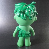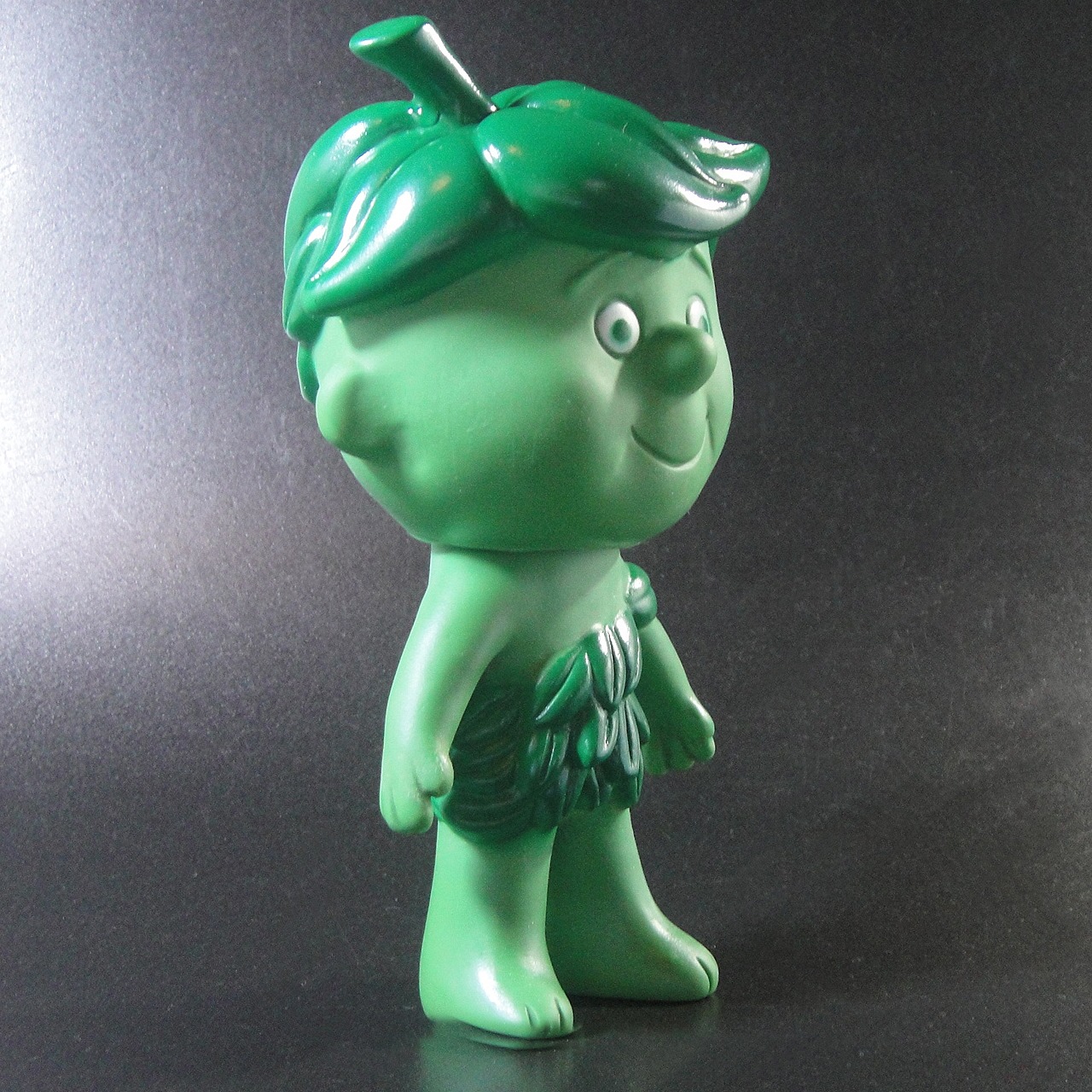 70~80年頃のアメリカ食品加工会社グリーンジャイアント社のキャラクターでグリーン・ジャイアントの相棒として知られるリトルグリーンスプラウト・ラバードールです。首の下側に著作権を示すTM GG COマークがあります。