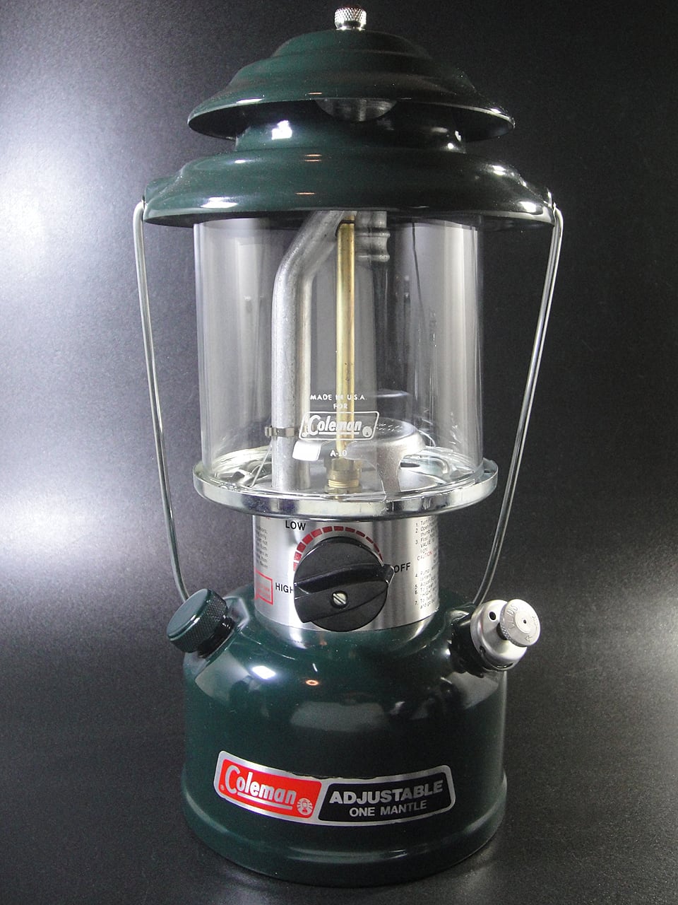 1984年に登場したコールマン定番のロングセラーモデルホワイトガソリン仕様のコールマン286A700ADJUSTABLE(アジャスタブル) ワンマントルランタン1988年3月製です。取扱説明書と当時のミニアクセサリーカタログが付属します。