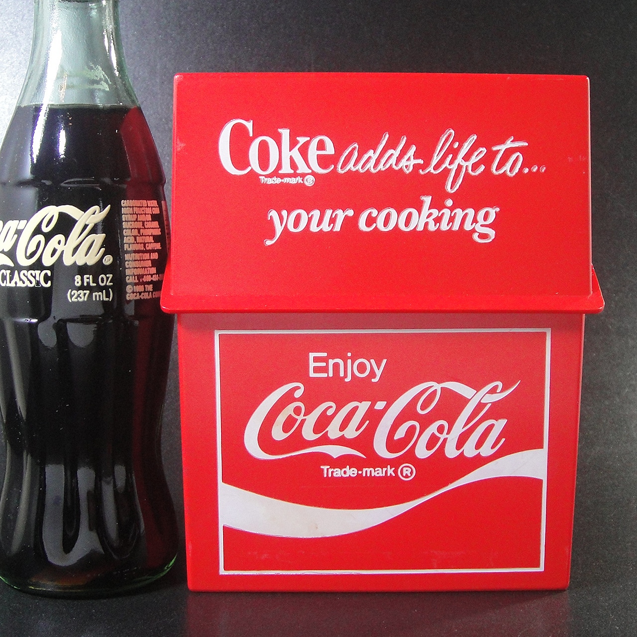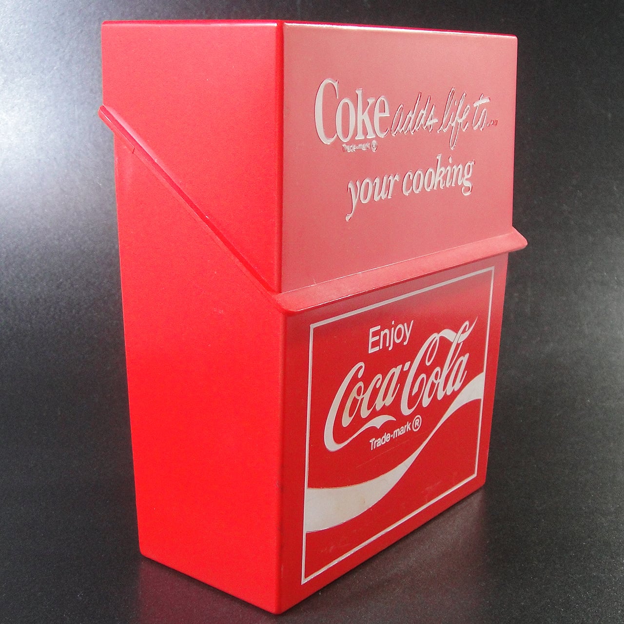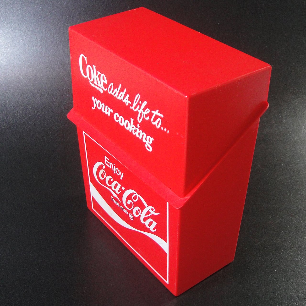 1978年頃のアメリカのコカ・コーラノベルティグッズで料理レシピカードが入っていたプラスチック製クッキングレシピボックスです。レシピカードは付属しません。