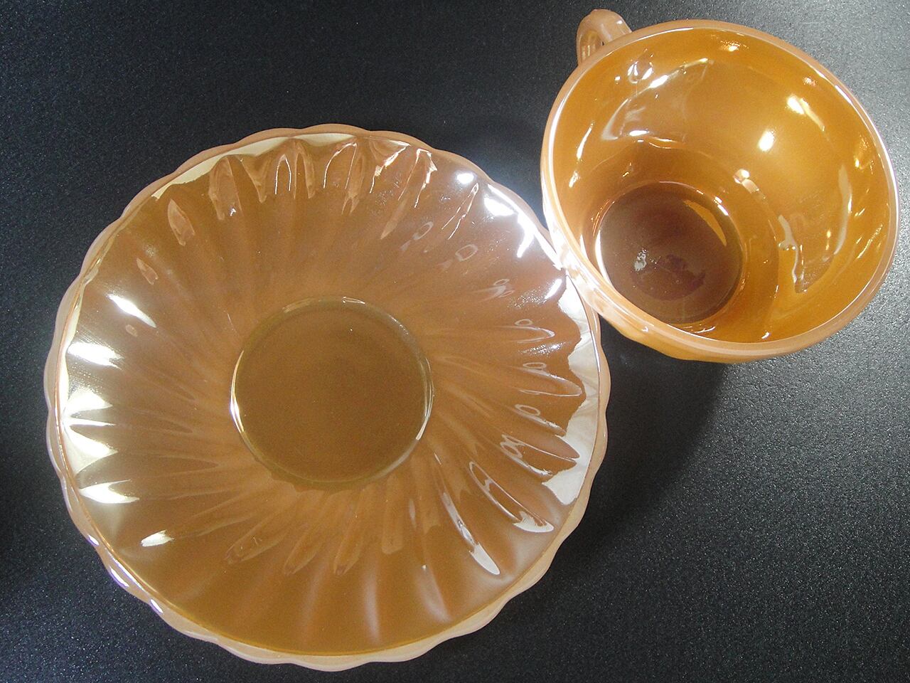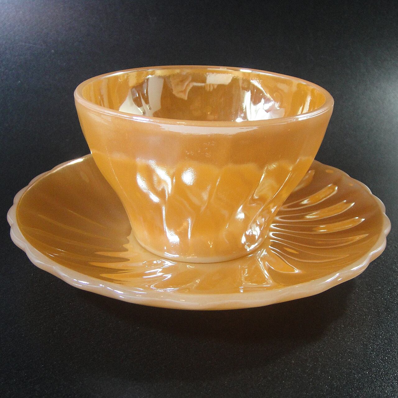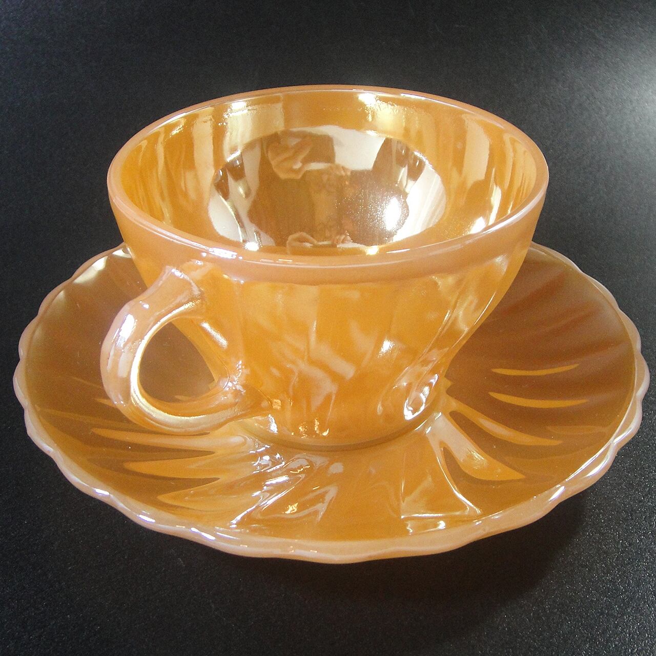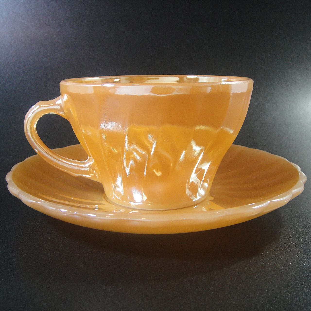 70’sアメリカ製アンカーホッキング サバ―ビア ピーチラスター シェル カップ&ソーサー1970年代☆彡