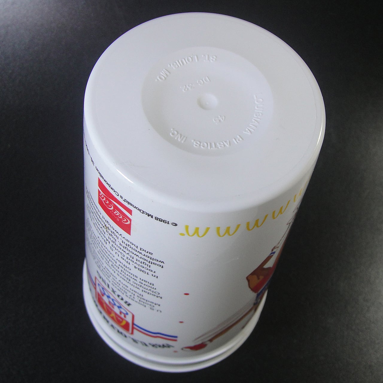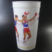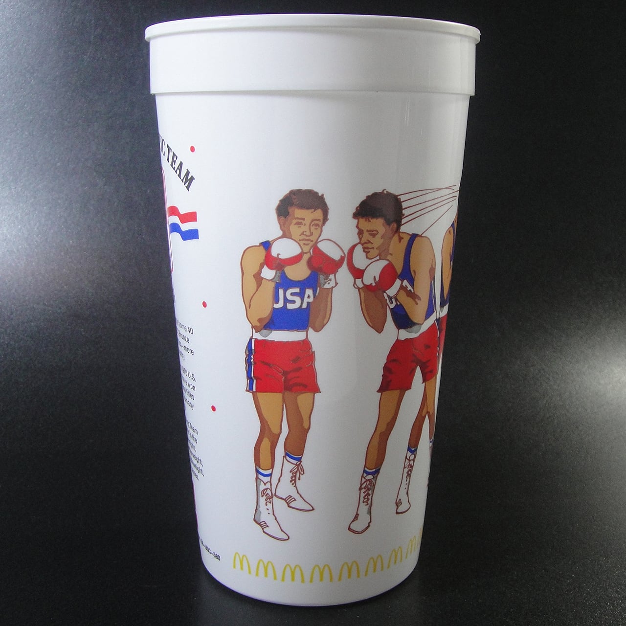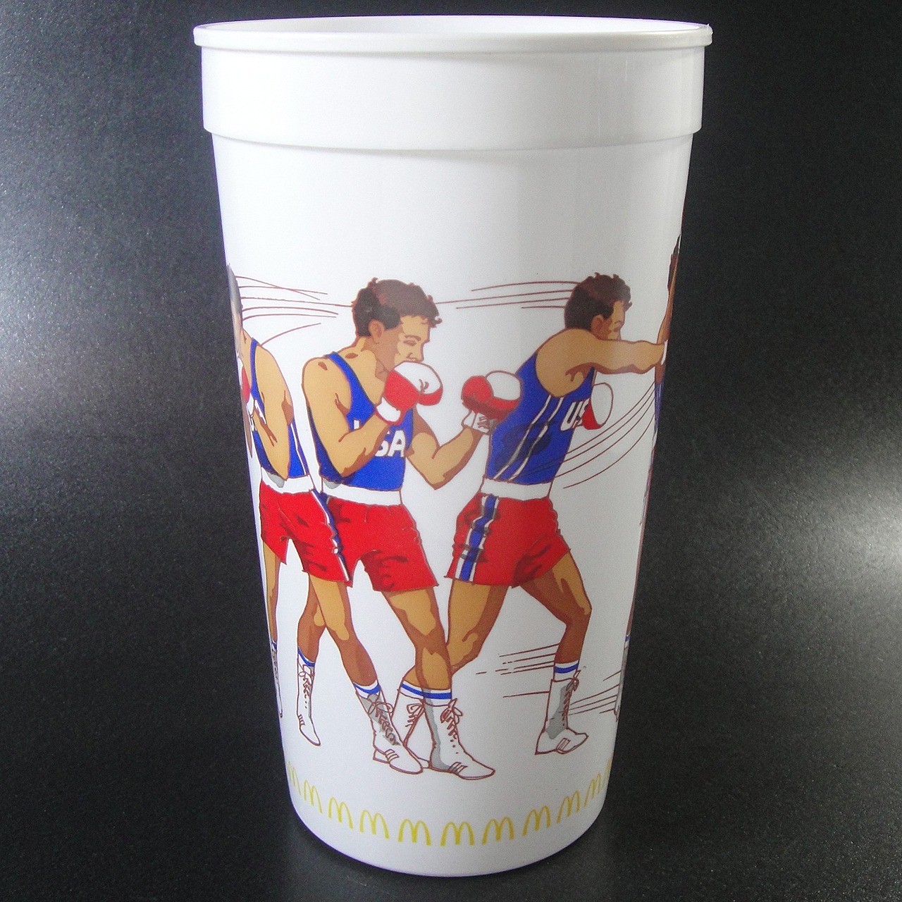 1988年ソウルオリンピックを記念してアメリカのマクドナルドとコカ・コーラ協賛で展開されたプロモーション用のプラスチック製コレクターズカップU.S. OLYMPIC TEAMシリーズボクシングの未使用デッドストックです。競技の一連の動作がカップ周囲に描かれている面白いカップです。
