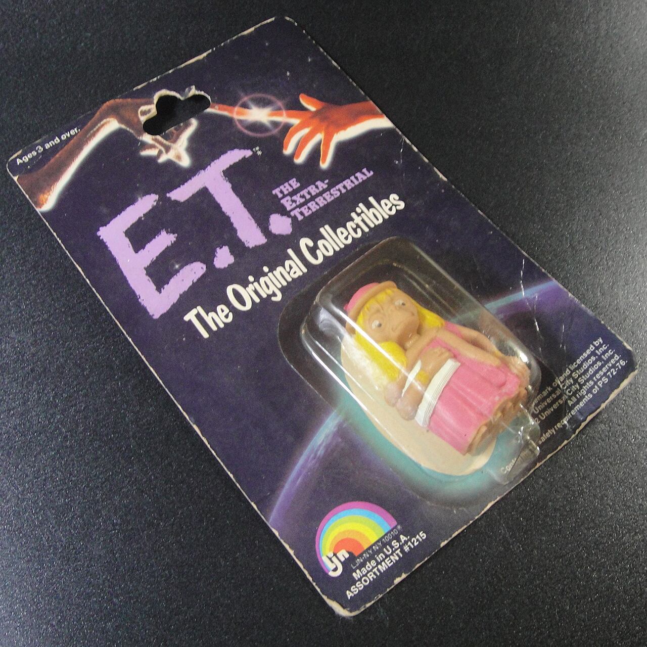1982年に公開された映画「E.T.」の玩具・コンピュータゲーム販売会社であったLJN社から発売されたオリジナルグッズのPVCフィギュア3種セット未開封品です。台紙の印刷はカナダでフィギュアはアメリカ製2個と台湾製1個になります。パッケージに折れやスレなどの傷みがありますのでお買い得品になっています。
