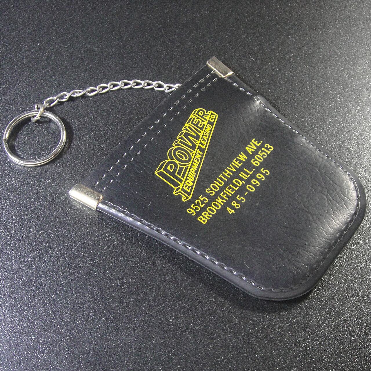 アメリカのイリノイ州ブルックフィールドにある1969年以来シカゴと中西部地域で高所作業車および特殊車両のレンタル会社を行っていたパワー・エクイップメント・リースィング社のノベルティでビニールのレザー調コインケースのキーホルダーです。2023年には合併してUSSIレンタルズになっています。ケース左右の金具部分を指で挟むとケースがオープン状態になり、離すと戻ります。