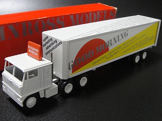 1981年頃のダイキャスト製ノベルティーミニチュアトラック製造会社のウィンロス社WINROSS MODELS仕様グッド・モーニング、スパークル&ベネフィットトラックトレーラーです。小さいながら精密に作られてたアメリカ製のミニチュアモデルです。
