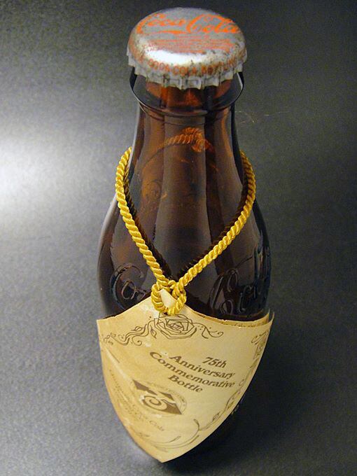 1977年にアメリカのアラバマ州ハンツビルのコカ・コーラボトリング社から限定発売された75周年記念ボトルです。珍しいアンバー色ガラスのボトルです。最初から中身の入っていないコカ・コーラ記念ヴィンテージボトルです。